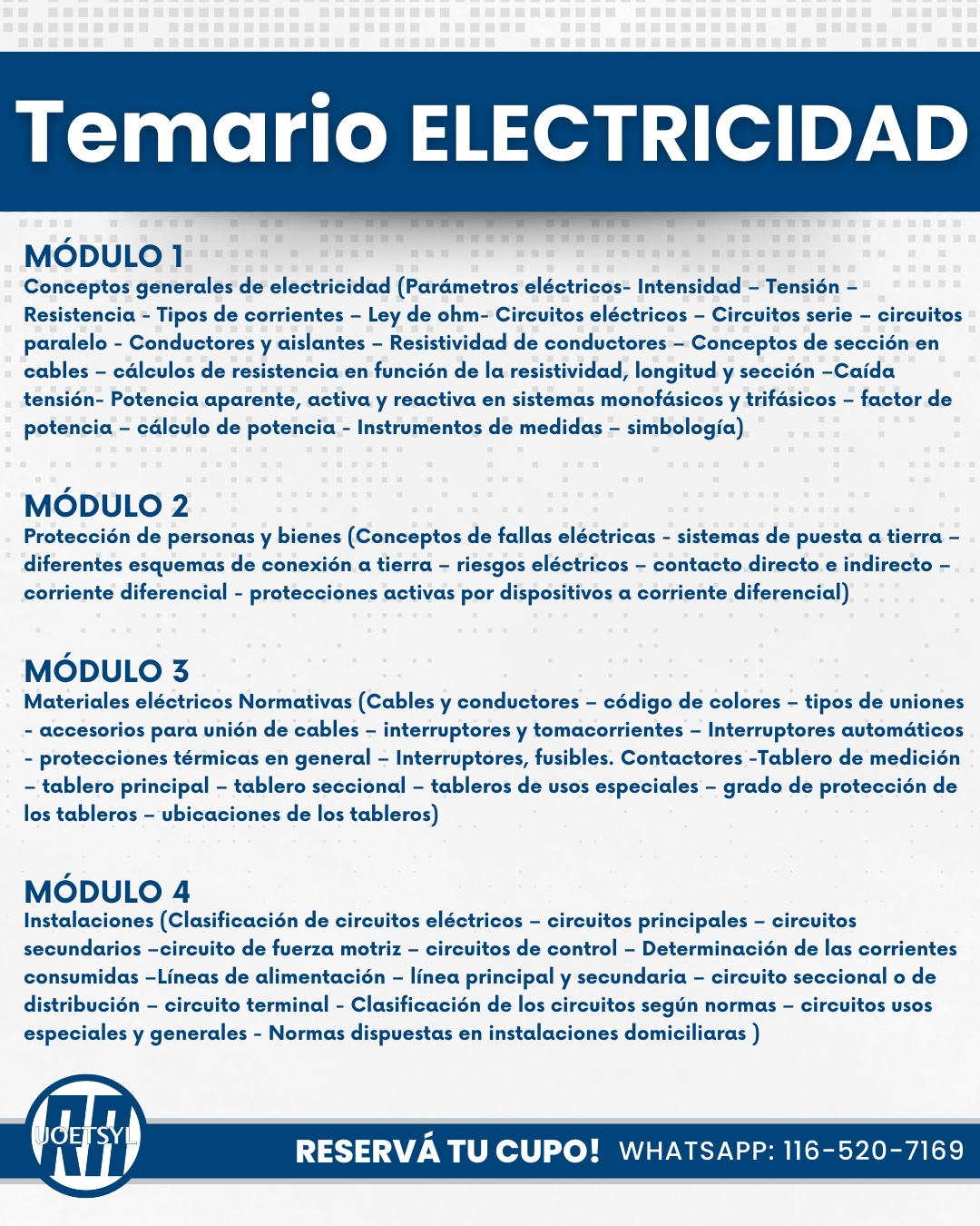 Anotate hoy mismo para estos cursos virtuales: Seguridad e Higiene, Electricidad e Informática
