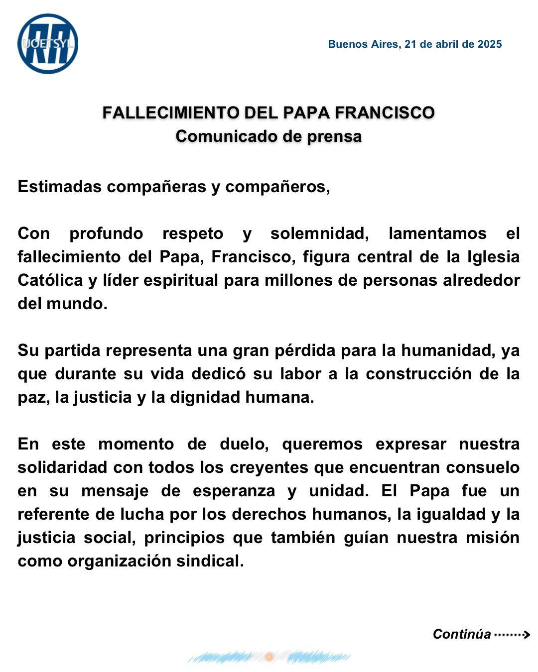 HASTA SIEMPRE QUERIDO PAPA FRANCISCO!